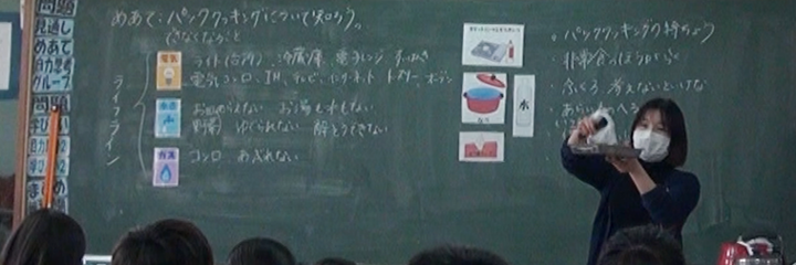 - 授業内容災害時にはライフラインが遮断する可能性があることやそれに伴う影響を学び、ライフライン遮断時に便利なパッククッキングについて学びました。授業中に栄養教諭がパッククッキングの実演を行いました。